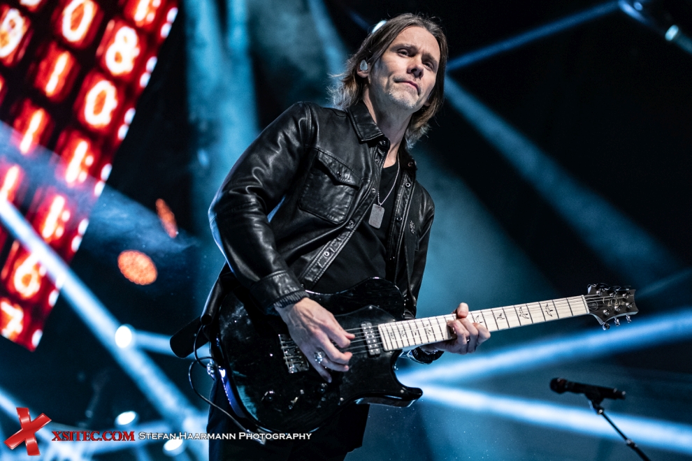 Die Mischung macht´s und die stimmt an diesem Abend ausgesprochen gut. Tremonti und Kennedy harmonieren hervorragend, Scott Phillips und Brian Marshall schnüren das rhythmische Korsett der Band in bewährter Manier und ohne Mätzchen im Hintergrund. Mark Tremonti übernimmt bei „Burn It Down“ sogar das Mikrofon, „In Loving Memory“ überzeugt auch in der Akustik-Version, „Blackbird“ vom gleichnamigen Album mit seinem dunklen Riff zeigt die Band von ihrer nachdenklichen Seite, bevor „Wouldn´t You Rather“ vom „Walk The Sky“ Longplayer wieder deutlich härtere Töne anschlägt.