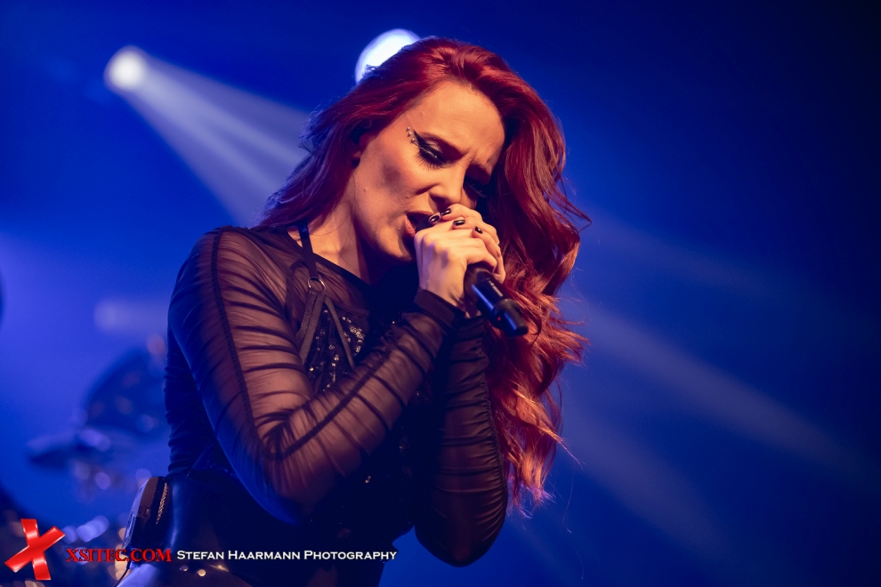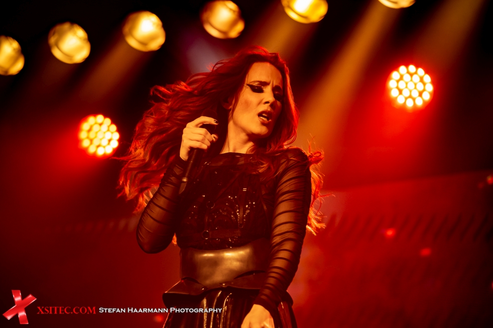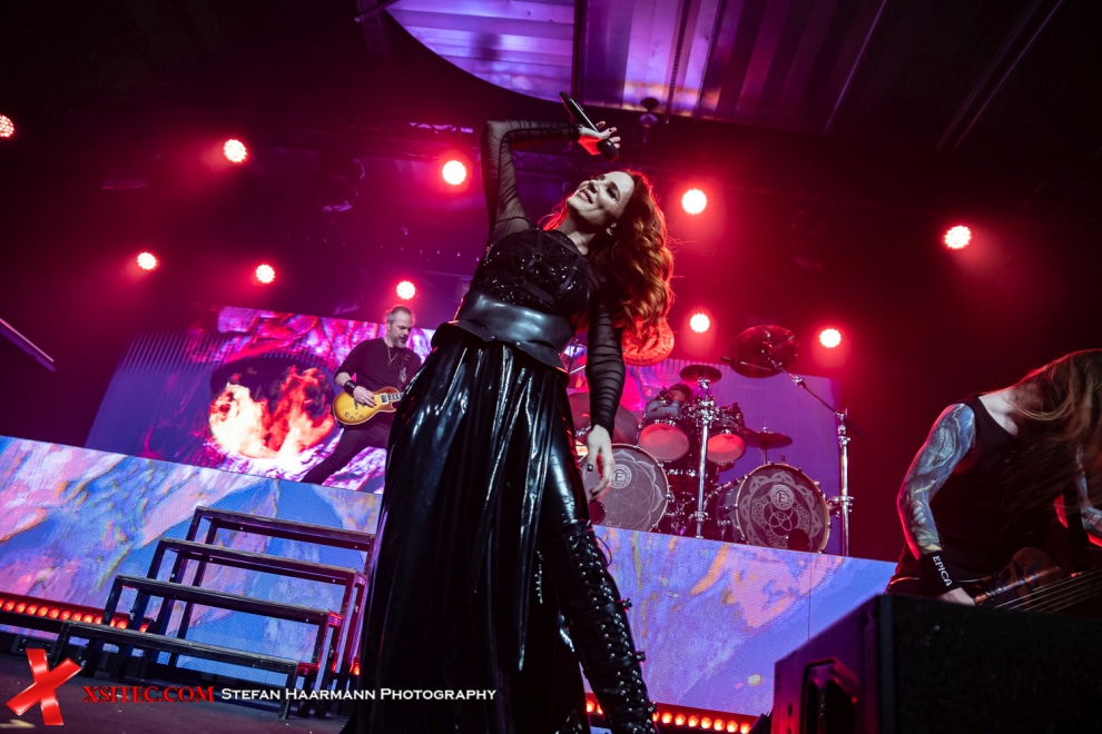 Zunächst sind EPICA um Frontlady Simone Simonis an der Reihe, denen die Aufgabe zufällt, die Fans auch ohne den sonst üblichen Support auf Betriebstemperatur zu bringen. Nach dem gediegenen Intro „Alpha Anteludium“ vom Band geht es mit „Abyss of Time – Countdown to Singularity“ ohne Umwege in die Vollen. Die LED-Wände im Hintergrund untermalen die perfekt in Szene gesetzte Musik, die immer dann besondere Momente präsentiert, wenn Frontlady Simonis im Mittelpunkt steht. Dies gilt insbesondere für die ruhigen Passagen, in denen ihr Sopran das alles überstrahlende Element ist.