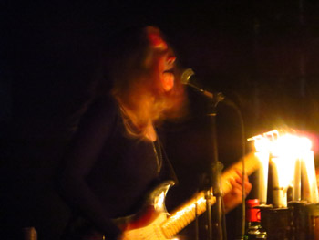 Gitarre schließlich blutbeflecktes Zeugnis von ihrem Willen ablegt, bis zum Ende der Zeremonie nicht locker zu lassen. Der Auftritt wirkt insofern auf eine Weise entrückt, die mir sehr behagt – es ist ein unvermitteltes Eintauchen in eine andere Welt, ähnlich wie in Kindertagen mit einem spannenden Buch, bei dessen Lektüre man die Zeit und die ganze Welt um sich herum vergaß. Ob die Musik an einem anderen Ort wohl noch intensiver wirkt? Unweigerlich muss ich an die Ruine einer alten Munitionsfabrik im Wald denken, die ich unlängst besucht hatte... und auch weite Teile des Publikums werden in den Bann gezogen, denn die Halle füllt sich trotz der noch recht frühen Stunde beachtlich.