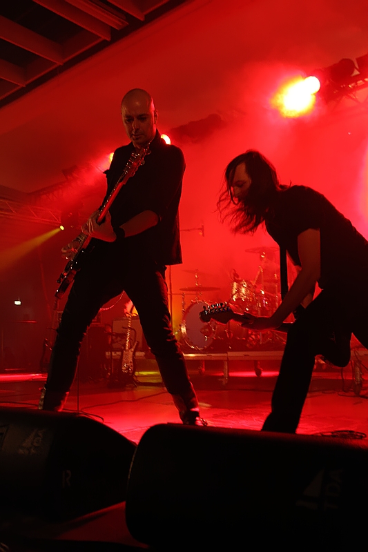Sei's drum, an ihren Instrumenten sind Mädels jedenfalls talentiert und fiedeln sich gekonnt durch ihre Interpretationen bekannter Hits aus Pop und Rock. Das Publikum lauscht andächtig, ich jedoch habe Hummeln im Hintern und verlasse das Theater nach ein paar Songs wieder, zumal mir eine liebe Bekannte über den Weg läuft und somit erst einmal die Pflege von Sozialkontakten im Vordergrund steht. So werden THE CRÜXSHADOWS und MONO INC. lediglich mit einem Ohr wahrgenommen, was jedoch völlig ausreicht.
