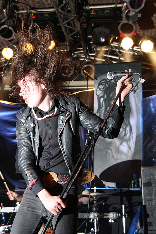 Auch CRADLE OF FILTH sind in diesem Billing nicht unumstritten. Dem trven Schwarzmetaller sind die Briten um Giftzwerg Dani Filth wohl zuviel Kasperletheater und mit Danis extremem Gekreisch muss man eh erst einmal klar kommen. Ziemlich überraschend ist indes, dass er heute Abend selbst die kreischigsten Passagen unerwartet gut meistert, das war in der Vergangenheit nicht immer der Fall und auch auf den letzten Studioalben klang das nicht mehr ganz so derb wie früher. A propos früher, die Teilnahme an der Tour steht für CRADLE OF FILTH, die mit zwei Sessiongitarristen unterwegs sind, im Zeichen des 20-jährigen Jubiläums des Debütalbums "The Principle Of Evil Made Flesh", dementsprechend werden nach dem Opener "Cthulu Dawn" mit "A Dream Of Wolves In The Snow", "Summer Dying Fast" und dem Titeltrack gleich drei Stücke hintereinander daraus dargeboten. Starker Einstieg, dem man mit "Beneath The Howling Stars" einen weiteren alten Klassiker hinterherjagt. Weil Frontmann Filth nicht gerade groß gewachsen ist, steigt er immer wieder auf kleine Emporen, ansonsten hüpft er wie ein Duracell-Häschen auf Speed über die Bühne, was schon recht ulkig wirkt. Der Rest seiner Band übt sich in Posen und Banging, die hübsche Keyboarderin ist in der linken Bühnenecke aber nur zu erahnen. Das Oldschool-Programm wird kurz mit dem neuen "For Your Vulgar Delectation" und dem unnötigen, weil heute zu lahmen "Nymphetamine" unterbrochen, danach darf man sich an "Born In A Burial Gown", dem superben "Cruelty Brought Three Orchids", dem obligatorischen Hit "Her Ghost In The Fog" sowie der Zugabe "Funeral In Carpathia" erfreuen. Starke Setlist also, die ebenso stark dargeboten wird, was für reichlich Applaus im wieder vollen Auditorium sorgt. Dass CRADLE OF FILTH so gut abräumen, darf man also getrost als Überraschung des Abends werten.