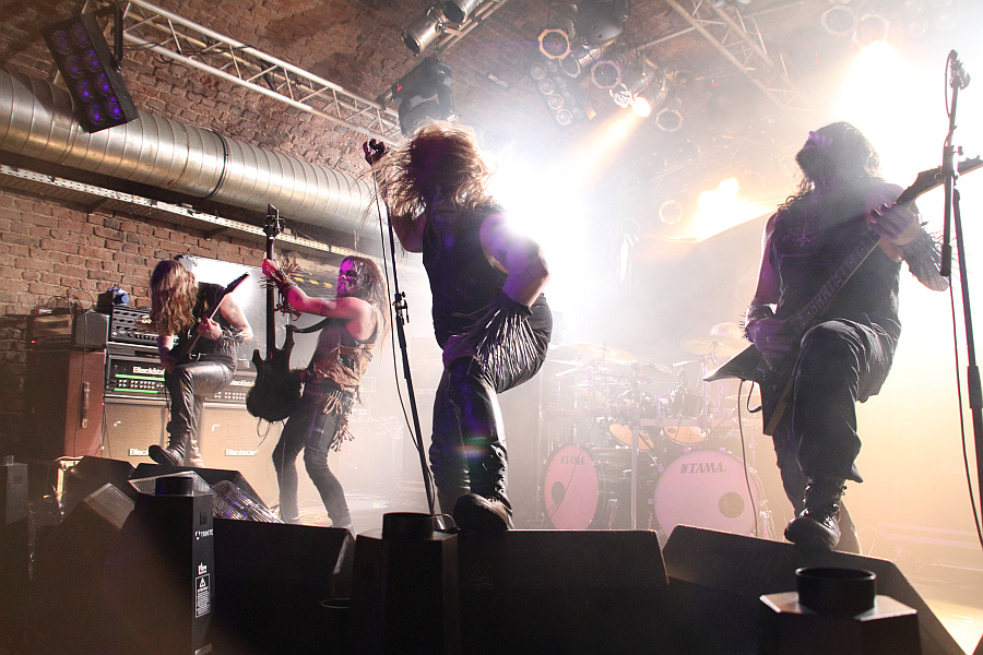 SVARTTJERN sind ein klassischer Vertreter des norwegischen Black Metals und das sowohl in musikalischer, wie auch in optischer Hinsicht. Corpsepaint im Gesicht und auf dem Oberkörper sind bei den Osloern noch immer genauso angesagt, wie die martialischen Nagelarmbänder. Und so grimmig, wie sie aussehen, präsentieren sie sich auch musikalisch. Flirrende Leadgitarren legen einen Teppich aus flächigen Harmonien, auf denen brutal klirrend gerifft wird, das alles im Geschwindigkeitsbereich zwischen treibendem Midtempo und manischer Raserei, begleitet von röchelndem Gekeife. Sonderlich außergewöhnlich ist das nicht, wird von SVARTTJERN aber überzeugend dargeboten. Obwohl die Band mit "Ultimatum Necrophilia" gerade ihr drittes Album veröffentlicht hat, wird daraus nur der Titeltrack dargeboten, die anderen sechs Stücke entstammen den Vorgängeralben. Solider Auftakt in den Konzertabend, an dem es abgesehen von der nicht sehr ausgeprägten Eigenständigkeit kaum etwas zu bemäkeln gibt, denn auch der Sound ist hier passabel.
