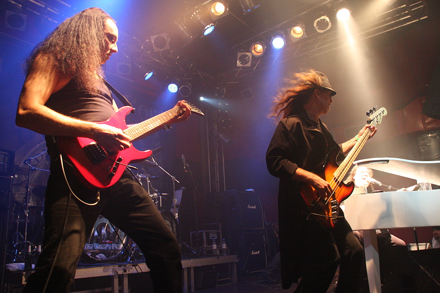 Auch der Name der zweiten Vorband ist nicht gerade geläufig, aber zumindest ein paar Leute können etwas mit KINGCROW anfangen, denn die haben schon einmal im Turock gespielt und zwar als Vorband von FATES WARNING. Die italienische Band nimmt die Show an diesem Abend für eine DVD-Veröffentlichung auf, was sich nicht als schlechte Wahl entpuppt, denn das Publikum spendet der Truppe reichlich Applaus. KingcrowMusikalisch wird nicht sonderlich harter, aber umso spannenderer, sehr atmosphärischer Progressive Rock geboten, bei dem nicht nur die spielerische Darbietung überzeugen kann, sondern auch das Material selber. Selbst wenn man die Band noch nie gehört hat, kann man sich schnell von ihr mitreißen lassen und so fängt man langsam an, den Abend auch zu genießen. Besonders gelungen sind die immer wieder einfließenden folkloristischen Elemente, die ein sehr mediterranes Flair haben und so dafür sorgen, dass man KINGCROW auch als überaus eigenständige Band im Gedächtnis behält. Optischer Blickfang auf der Bühne sind Gitarrist Diego Carfolla und Sänger Diego Marchesi, die mit viel Bewegung bei der Sache sind, Geschmack beweist der Sänger darüberhinaus mit seinem T-Shirt, dessen Motiv sich am Plattencover von JOY DIVISIONs "Unknown Pleasures" orientiert. Letztlich eine überaus gelungene Darbietung einer höchst interessanten Band, deren Name man sich als Liebhaber von kühlem Progrock unbedingt merken sollte.