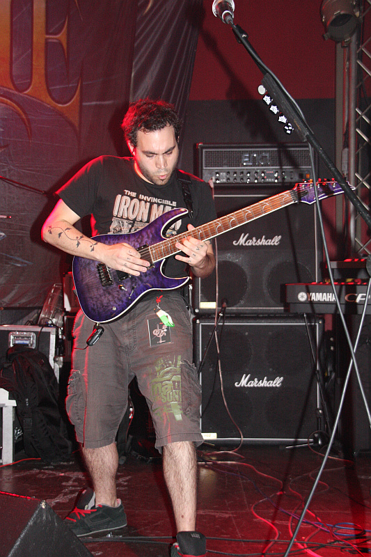 Max PieZwei Vorbands sind an diesem Abend mit von der Partie. Die erste dürfte den wenigsten ein Begriff sein und so fragt man sich zunächst, was um alles in der Welt der bescheuerte Bandname MAX PIE bedeuten soll. Das Rätsel wird nicht gelöst. Die belgische Band, die 2005 als Coverband gestartet ist, spielt melodisch-progressiven Metal, der allerdings so gut wie niemanden, der heute anwesend ist, beeindrucken kann - ganz im Gegenteil. Ein Großteil des Publikums ist froh, als die Band die Bühne wieder verlässt. Das liegt vor allem daran, dass die Musik der Belgier völlig gesichtslos ist und komplett an einem vorbeizieht, ohne auch nur den geringsten Eindruck zu hinterlassen. Mit zunehmender Spielzeit fängt des Gedudel sogar gehörig an zu nerven. Auch der optische Eindruck der Truppe ist eher seltsam. Der Bassist sieht aus wie ein zu kurz geratener Bruder von GRAVE DIGGERs Chris Boltendahl, der Gitarrist trägt sein Instrument unter der Brust und hat sich seine Bühnenperformance bei IRON MAIDENs Janick Gers abgeguckt. Dementsprechend albern tänzelt er auf der Bühne herum und ist sich auch nicht dafür zu schade, sich umzudrehen und mit dem Hintern zu wackeln. Und Sänger Tony hat die Ausstrahlung eines südeuropäischen Bauarbeiters. Das kann man sich noch nicht einmal schön saufen.