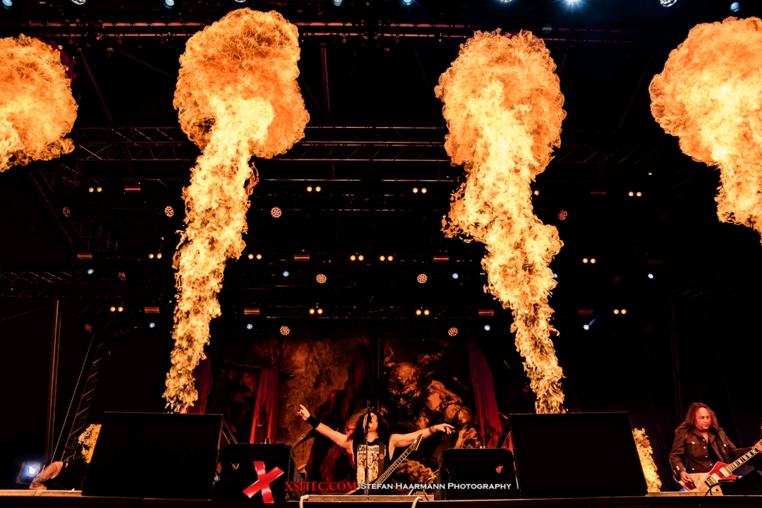 Wem das in Sachen Power noch nicht gelangt hat, bekommt bei HAMMERFALL nebenan gleich nochmal jede Menge Druck und Hingabe geliefert, denn schwedischer