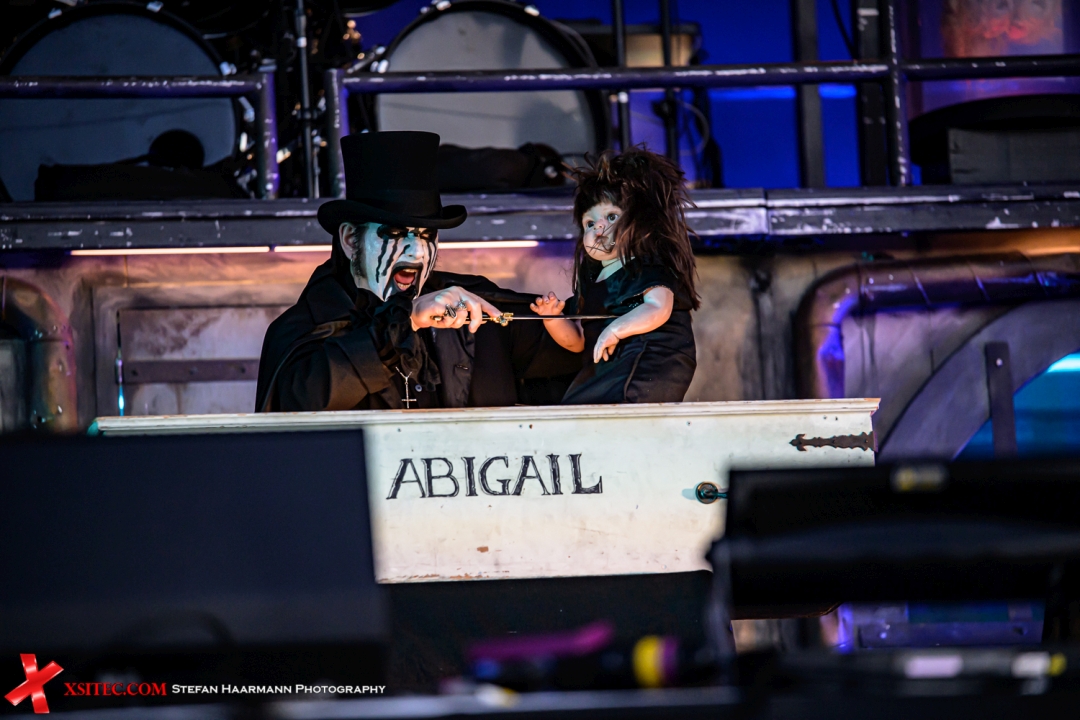 Dann wird’s theatralisch: KING DIAMOND betritt mit kunstvollem Bühnenbild und Schaueratmosphäre die Bühne. „Welcome Home“, „The Candle“, „Burn“ oder „Abigail“ – Klassiker jagt Klassiker. KING DIAMONDs Falsett sorgt seit je her für Diskussionen, der Stimmung ist dies an diesem Tag aber nicht abträglich: Die Inszenierung ist ein düsteres Metal-Kabinett, das die Fans begeistert. Der Meister zeigt sich bestens aufgelegt und nimmt sich zwischen den Highnotes sogar die Zeit, mit dem Publikum zu flirten, womit der Mensch hinter der Kunstfigur erkennbar wird. Diese Momente sind es, die unbezahlbar, weil unverhofft und nur in der Livesituation möglich sind. Eine grandiose Show.