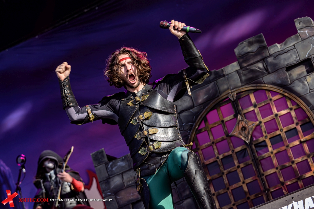 Weiter geht es mit GLORYHAMMER. Wie aus einer anderen Dimensin surfen aufblasbare Dinos über die Crowd. GLORYHAMMER liefern eine bunte Fantasyshow voller Ironie und Pomp. „The Land of Unicorns“ oder „Universe on Fire“. Zum Schluss gibt’s mit „The Unicorn Invasion of Dundee“ eine epische Hymne – Fantasy-Overkill vom Feinsten!