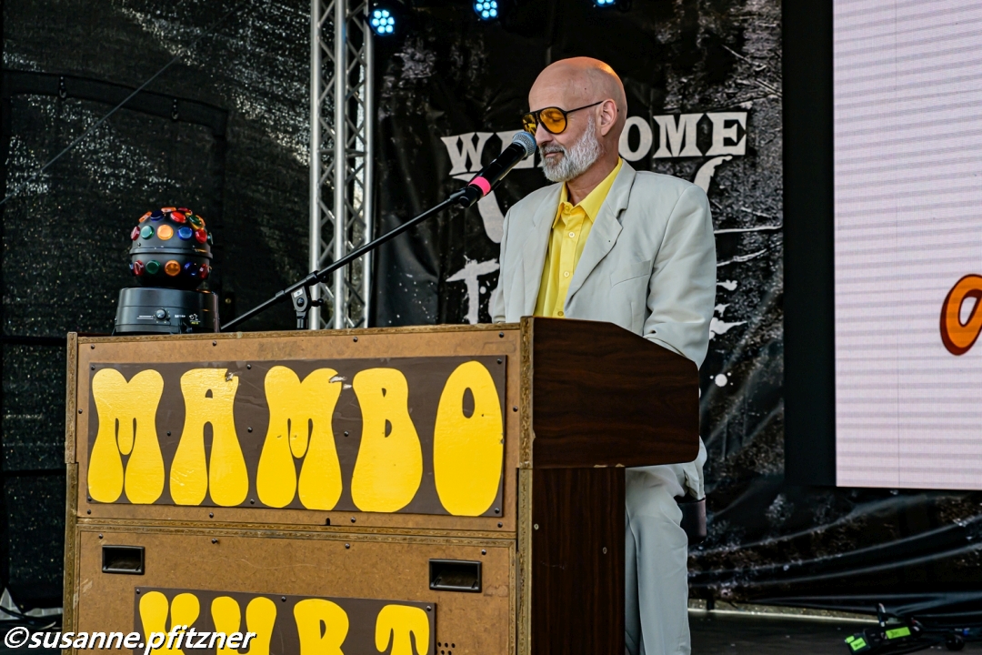 Direkt im Anschluss heißt es rüber zur Welcome to the Jungle Stage, wo MAMBO KURT – seit Jahrzehnten eine absolute Wacken-Kultfigur – mit seiner Heimorgel auftritt. Sein Markenzeichen: bekannte Rock- und Metaklassiker im schrillen Bierzelt- und Lounge-Stil, dazu jede Menge schräger Humor. Heute gibt es eine spontane Einlage: Eine freiwillige „Mambo-Tänzerin“ aus dem Publikum entert die Bühne, improvisiert eine mitreißende Show und erntet tosenden Applaus. Unter strahlendem Sonnenschein grölen hunderte Fans die Refrains mit – man könnte fast vergessen, dass man auf einem Metal-Festival ist.