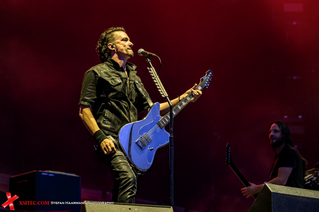 Frankreichs tonnenschwerer Export: präzise wie ein Uhrwerk, wuchtig wie eine Springflut. Die HARDER bekommt tektonische Riffs, hypersaubere Doublebass-Parts und ökologische Untertöne. Die Texte weisen teilweise spirituelle Einsichten aus, die im Infield, nicht zuletzt aufgrund des wieder einmal herunterprasselnden Regens, nicht wirklich wahrgenommen werden. Die französischen Metal-Meister liefern eine Darbietung, die sowohl technisch atemberaubend als auch spirituell gewaltig ist. Als der Himmel sich verdunkelt, macht das hypnotische, hämmernde Intro von „Born For One Thing" einem Set Platz, das sich wie ein urtümliches Ritual anfühlt. Die Visuals von Entwaldung und Ozeanverschmutzung während „The Chant" und „Amazonia" sind eindringlich und verwandeln das Konzert in eine machtvolle, gemeinsame Aussage. Das synchronisierte Headbangen während „Stranded" ist ein Bild für die Götter, in dem die hier versammelte Metal-Armee im Schlamm zur Einheit wird. Großartig.