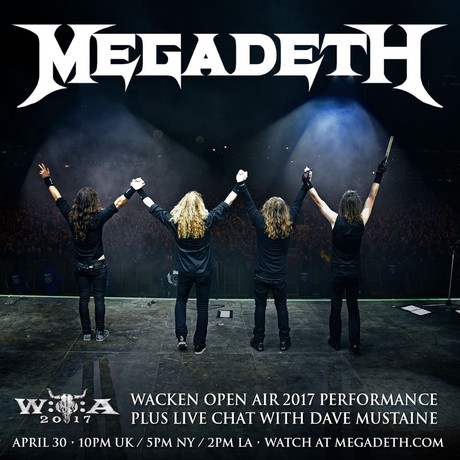 „We will be premiering our performance from Wacken Open Air 2017 tomorrow, April 30 at 10pm UK / 5pm NY / 2pm LA at megadeth.com. Dave Mustaine will be in the YouTube chat during the performance, so get your questions ready.“