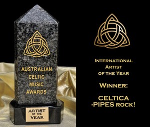 "Soeben haben wir die sensationelle Nachricht erhalten, dass wir, “CELTICA – Pipes rock!”, bei den Australian Celtic Music Awards 2019 den sensationellen Preis als International Artist of the Year gewonnen haben!